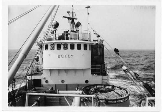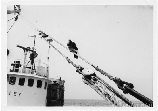 Óvæntur farþegi ( dúfa ) um borð í 1000. Seley SU 10, í Norðursjó © mynd Guðni Ölversson