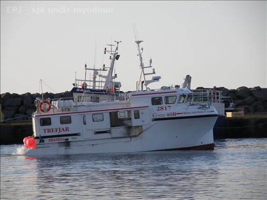2817. Fríða Dagmar ÍS 103 bíður eftir löndunarplássi og 6575. Garri BA 90 siglir að lokinni löndun, fram hjá á leið í smábátahöfnina