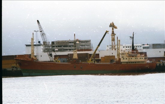 Hér koma fjórar myndir af þremur skipum Hafskips hér í denn.