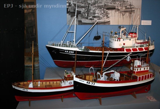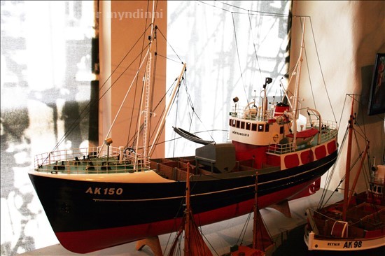 Hér fyrir neðan birtast 24 myndir sem ég tók sl. föstudag í Víkinni við Grandagarð í Reykjavík, er Sveinn Sturlaugsson bauð mér í heimsókn þangað. Sveinn fékk Grím Karlsson, á sínum tíma, til að smíða fyrir sig líkön af 17 bátum úr mun stærri bátaflota Haraldar Böðvarssonar & co. Að sögn Gríms var það þannig að um leið og Grímur lauk við smíði á einu líkani, gerði Sveinn upp verkið og pantaði annan bát frá Grími. Líkön þessi hafa verið til sýnis í Víkinni frá því um sumarið 2012 og eru í eigu Sveins.