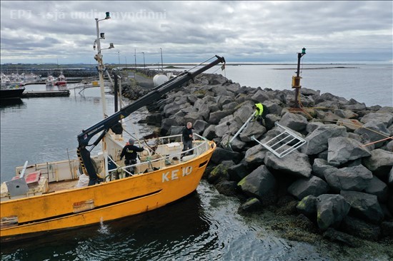 Köfunarþjónusta Sigurðar ehf kemur fyrir nýjum staurum í innsiglingunni til Sandgerðis
