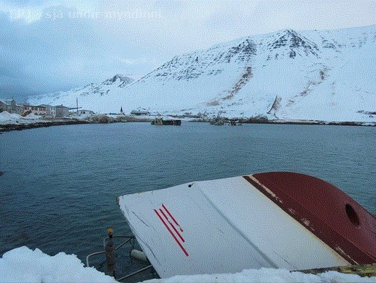 RANNSÓKNARNEFND SAMGÖNGUSLYSA RANNSAKAR HVERSVEGNA GÚMÍBATARNIR BLÉSU EKKI ÚT á FLATEYRI © MYND OG TEXTI: VÍSIR |