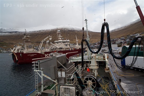 Hér koma tvær myndir af kolmunaveiðiskipinu Vilhelm Þorsteinssyni, þar sem það var í Fuglafirði í Færeyjum og segi ég nánar frá hvað um er að ræða undir myndunum.