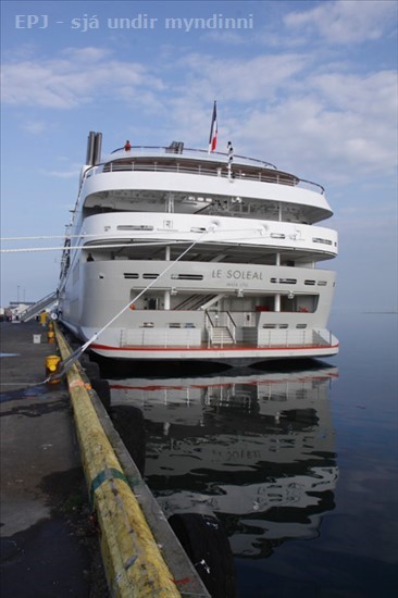 Franska skemmtiferðaskipið "Le Soleal" lagðist að bryggju í Hafnarfirði kl 7 að morgni 23. júlí sl. "Le Soleal" er glænýtt skip, lagði í jómfrúarferð sína frá Feneyjum 30. júní síðastliðinn. Skipið er lúxus skip, þar sem íburður er í hverju horni. Rúm er fyrir 260 farþega um borð. 148 manna áhöfn siglir skipinu örugglega um höfin og sér til þess að farþega skorti ekkert um borð.