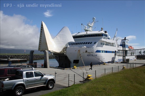 Hér kemur smá myndasyrpa sem ég tók í hádeginu í gær. Annarsvegar sjáum við Herjólf koma inn að bryggjunni í Landeyjarhöfn og hinsvegar er skipið búið að opna stefnið og farþegar og bílar á leið út úr skipinu í Landeyjarhöfn.