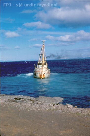 Hér koma nokkrar myndir sem ég tók af strandi bátsins fyrir 46 árum þ.e. á árinu 1968. Engar skriflegar heimildir fann ég um strand þetta, en minnir að báturinn hafi verið á leið í Dráttarbraut Keflavíkur, er hann fór út af leið, sem ég man ekki heldur ástæðuna fyrir, né hvernig hann losnaði. (Á sumum myndanna sést hve hann var stutt frá slippbryggjunni.)