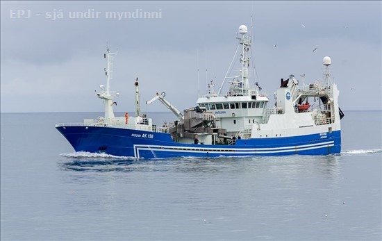 Ingunn AK 150 á siglingu inn Vopnafjörð