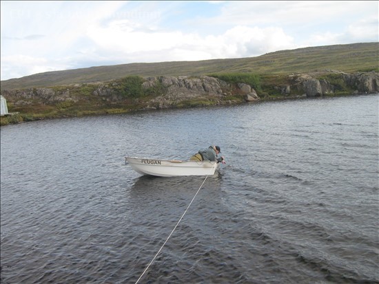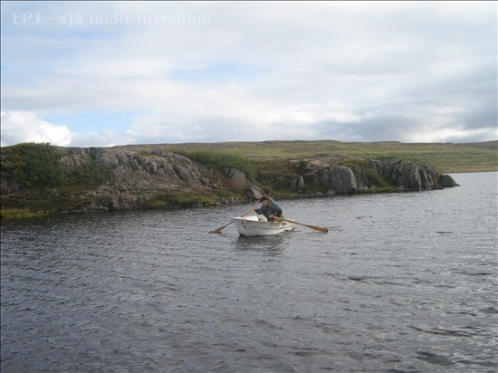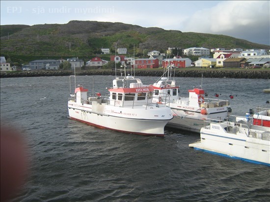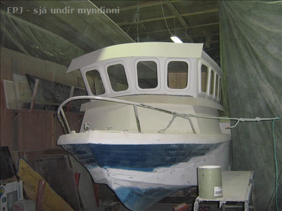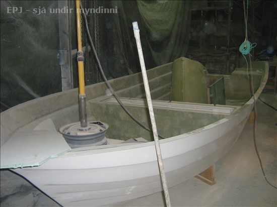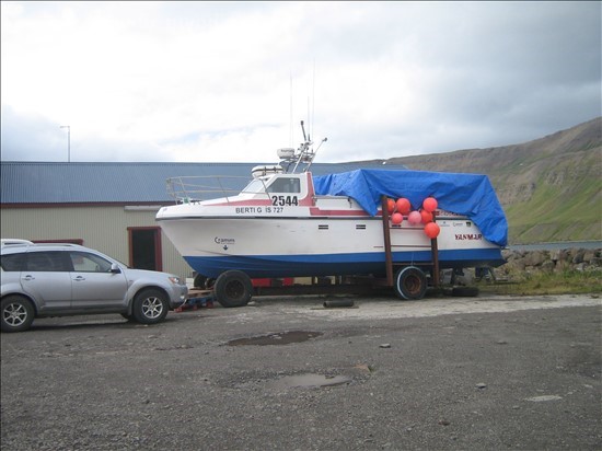 Eins og sést á fyrstu myndinni hefur ljósmyndarinn Jónas Jónsson, verið að flytja með sér vestur lítinn bát sem nefnist Flugan og var í viðgerð hjá Sólplasti, í Sandgerði