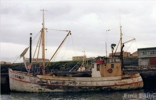 Sigurbrandur Jakobsson Var þetta ekki þannig að hann fékk á sig brot og sökk í innsiglingunni og það náðist á myndband. Gamli Ólafur GK 33 bjargaði körlum hangandi í belgjum yfir flakinu og það lokaði innsiglingunni það sem eftir var þessa dags en um morguninn hafði því svo skolað í pörtum uppí fjöru