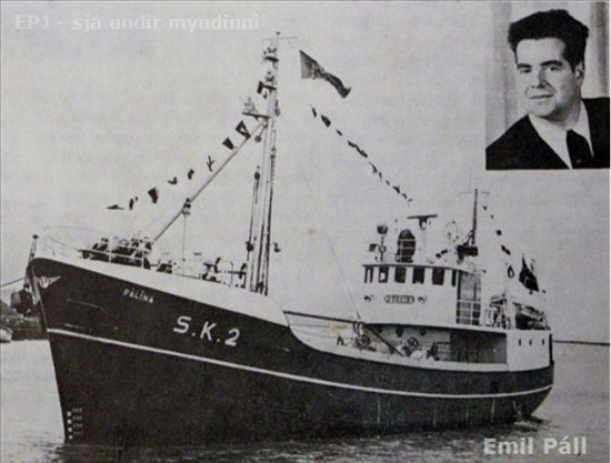 221. Pálína SK 2 og efst í hægra horninu er mynd af Gunnlaugi heitnum Karlssyni, skipstjóra og útgerðarmanni, betur þekktum sem Gulla Karls, á Voninni © mynd úr FAXA
