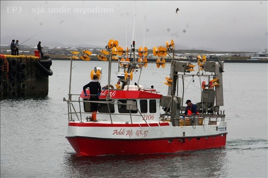 Birti ég nú myndasyrpu sem ég tók í Keflavíkurhöfn á 15 - 20 mínútum eftir hádegi í dag, en sé að einn makrílbátanna sem var að landa hefur ekki ratað fyrir linsuna á þeim tíma.