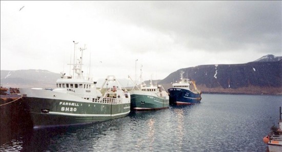 1629. Farsæll SH 30, 1408. Runólfur SH 135 og óþekkt flutningaskip í Grundarfirði © mynd Rósi