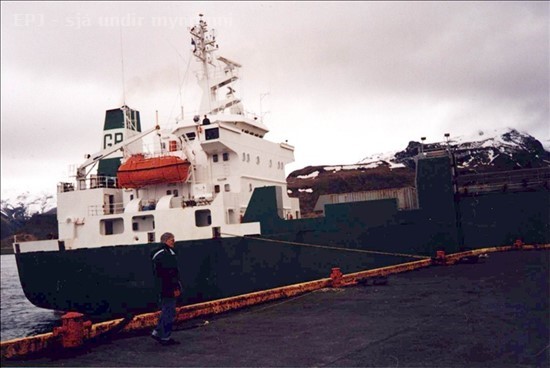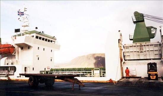 Erlent flutningaskip að athafna sig, í Grundarfirði