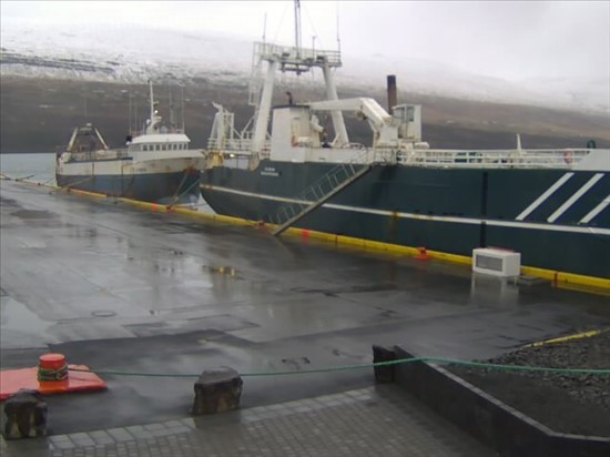 1345. Blængur NK 125 og 2190. Eyborg EA 59, við Oddeyrarbryggju, Akureyri, í gær © skjáskot af vefmyndavél Akureyrarhafnar 16. nóv. 2015