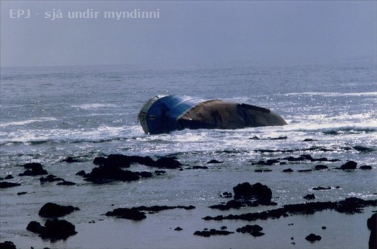 240. Gjafar VE 300, á strandstað © mynd á skilti á Hópsnesi, Grindavík, Emil Páll, 18. nóv. 2010 |
