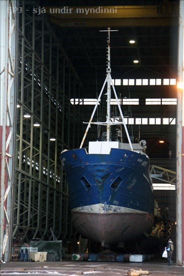 Arnar ÁR 55, í bátaskýli Skipasmíðastöðvar Njarðvíkur, í hádeginu i dag