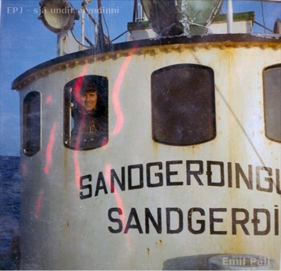 Jóhann Guðbrandsson ( Jói Branz) í brúarglugganum á Sandgerðingi GK 517