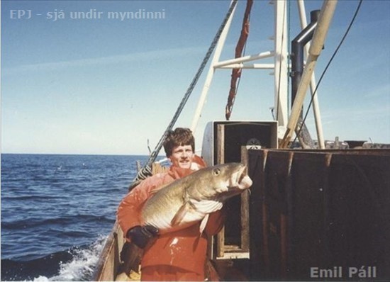 Þorgrímur Ómar Tavsen með boltaþorsk um borð í 1564. Berghildi SK 137 á Málmeyjarfirði