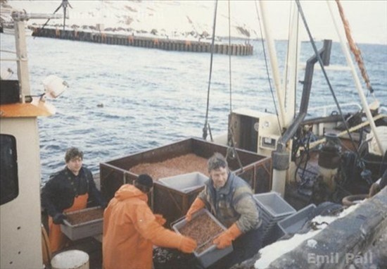 Já, góður rækjuafli þarna hjá þeim á 1564. Faxavík GK 727, á Hofsósi 1988 eða 1989 - 4 myndir