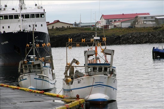 Bátarnir Máni II ÁR 7 og Máni ÁR 70, léku stórt hlutverk í myndasyrpu dagsins, sem ég tók upp úr kl. 7 í morgun í Keflavíkurhöfn. Syrpunar birti ég í kvöld. Að vísu koma þessar tvær myndir ekki aftur í kvöld en sýna engu að síður samspil viðkomandi báta og skips.
