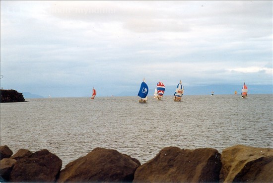 Seglbátar í kappsiglingu í Landsbankamóti frá Reykjavík og í Grófina Keflavík © mynd Emil Páll, á Ljósanótt fyrir xx árum