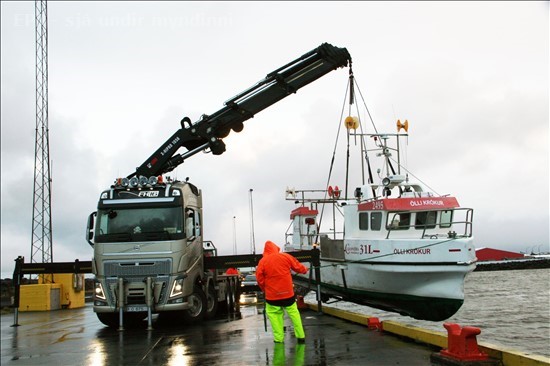 Ölli Krókur GK 211, lyft upp í Sandgerði af Jóni & Margeiri