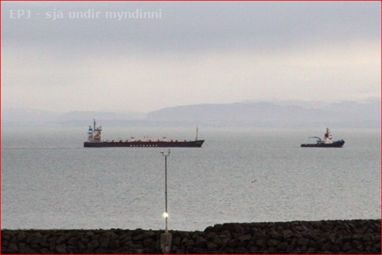 Togarinn (dráttarbátur ) með sementflutningaskipið nálagst nú Garðskaga