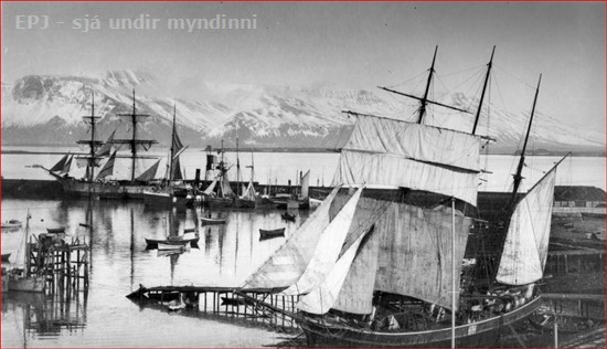 Reykjavíkurhöfn 1870 - 1909. Fjöldi skúta og báta á höfninni.