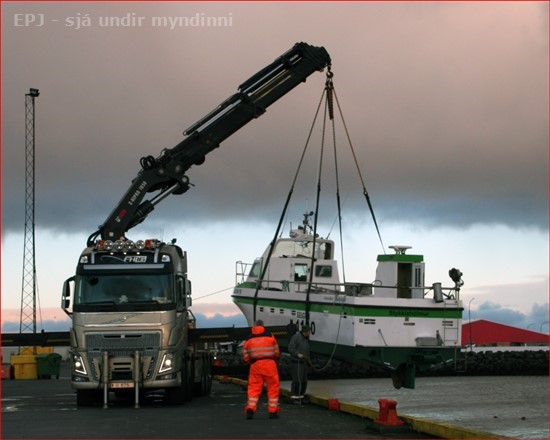 Kári SH 78, sjósettur frá Sólplasti með aðstoð Jóns & Margeirs