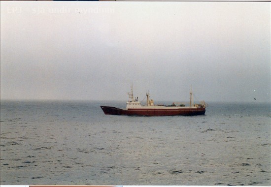 Hér sjáum við annars vegar sementflutningaskip sem bíður eftir að pláss losni í Helguvík og síðan sést Grímsnesið sigla fram hjá á leið sinni til Njarðvíkur