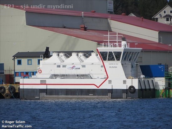 Báturinn er skráður í MarineTraffic, sem Saga, en á bátnum stendur nafnið Muninn og báturinn er á Austfjörðum.