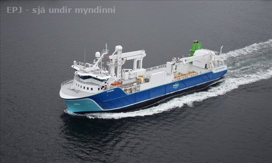 Melkart, í prufusiglingu eftir vélarupptekt á Akureyri í dag