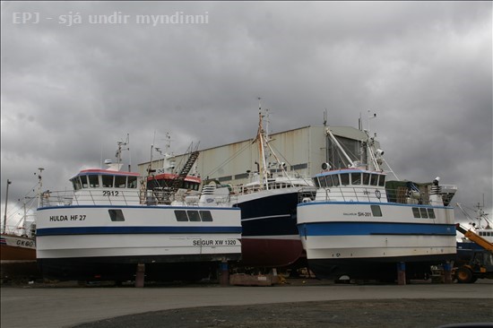 Hulda HF 27 og Gullhólmi SH 201, í Skipasmíðastöð Njarðvíkur