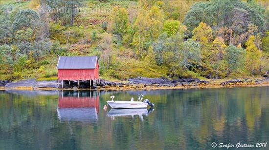 Svafar Gestsson í dag: Það er ljúft að sigla suður Raftsundið þrátt fyrir mikinn mótstraum þegar bæði norðan og sunnan sundsins geysar öflugur stormur og úrhellis rigning. Þetta þrönga sund sem skartar mikilli náttúrufegurð liggur þvert í gegnum Lofoten. Ferðinni heitið til Sørfjorden með efni fyrir vinnuflokk sem vinnur að því í þessum friðsæla eyðifirði, utan nokkurra sumarhúsa að koma upp vindmyllum til raforkuframleiðslu. Fórum með einn farm í gær og svo með restina núna.