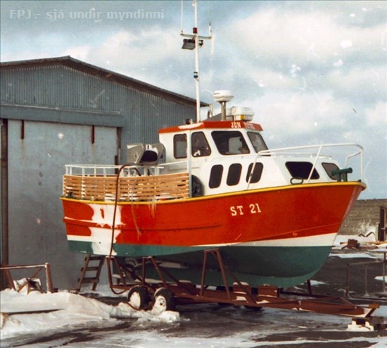 1786. Jón Pétur ST 21, tilbúinn til sjósetningar, í Sandgerði © mynd Emil Páll 1987 |